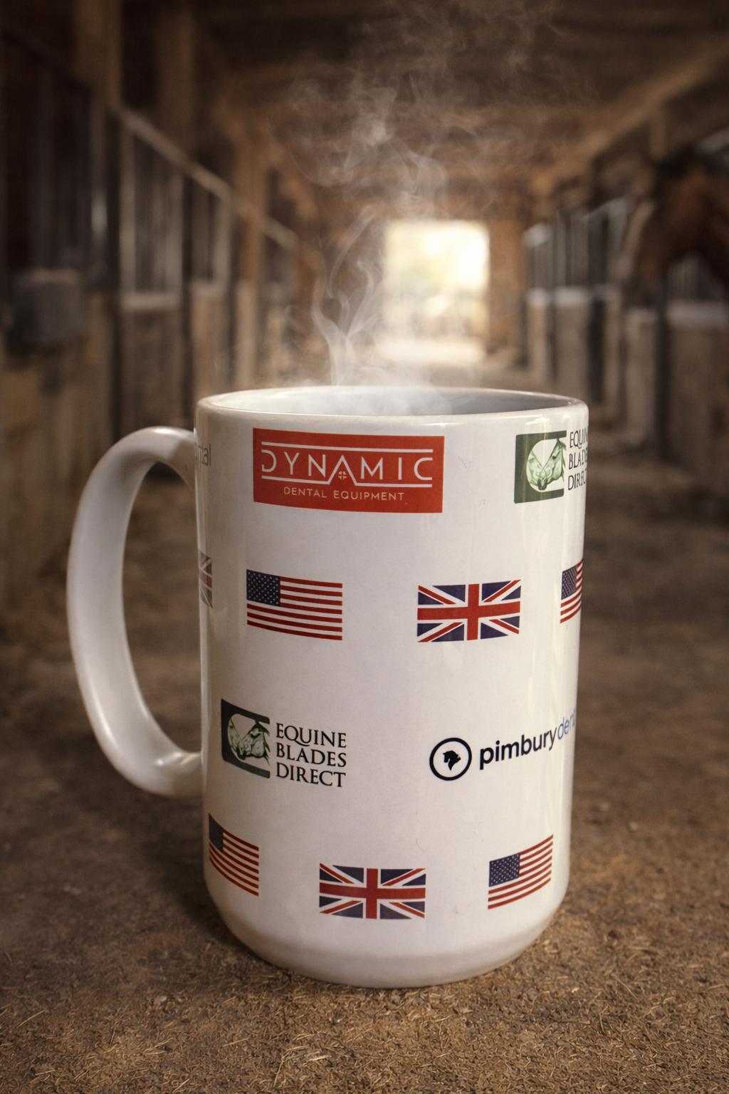 15 Oz Ceramic Mug with custom USA Dynamic Dental design. Mugs are custom-made and can take up to 2 weeks to create.